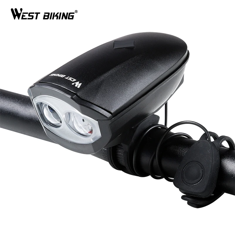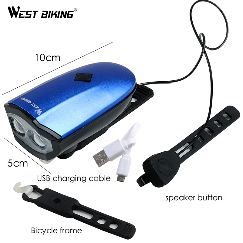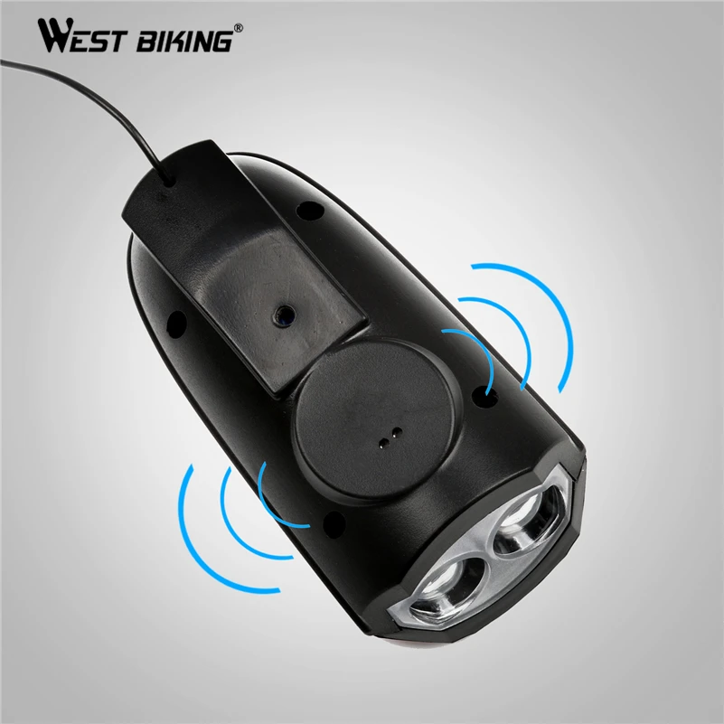 WEST BIKING 120 db Bicycle Bell USB Rechargeable Bike Horn Light Cycling Bright Flash Headlight Electric Anti-Theft Speaker