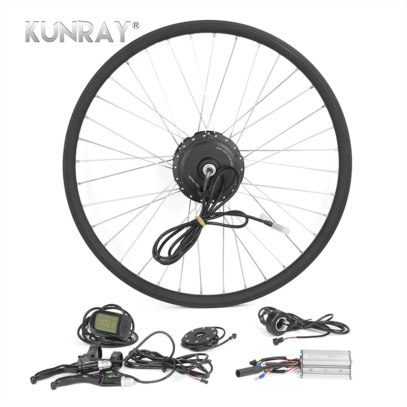 KUNRAY Electric Bicycle Conversion Kit 250W 36V 48V Brushless Gear Hub Motor For Road MTB Bike Front Wheel Ebike Set With LCD5